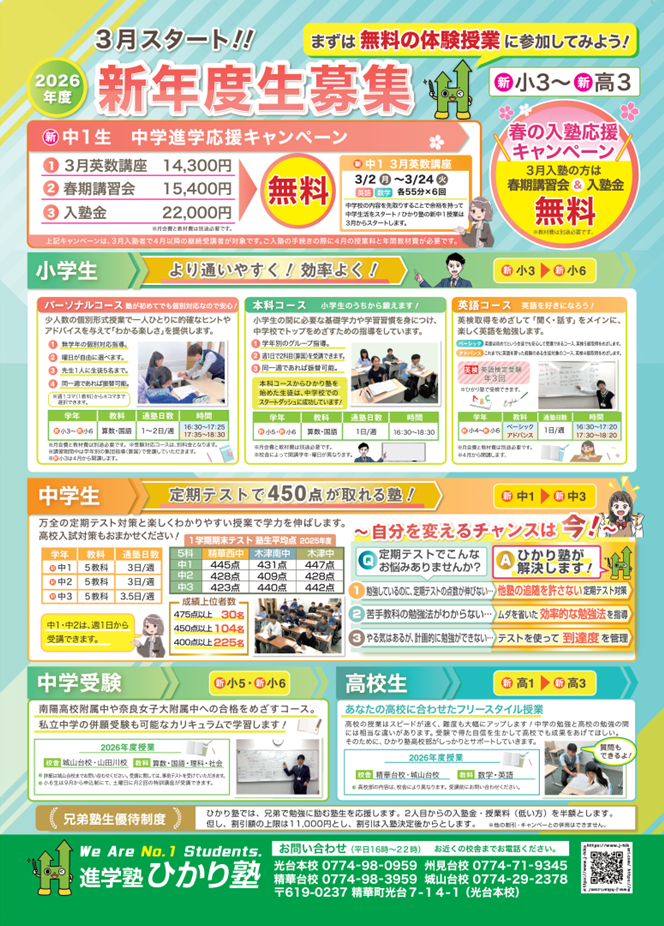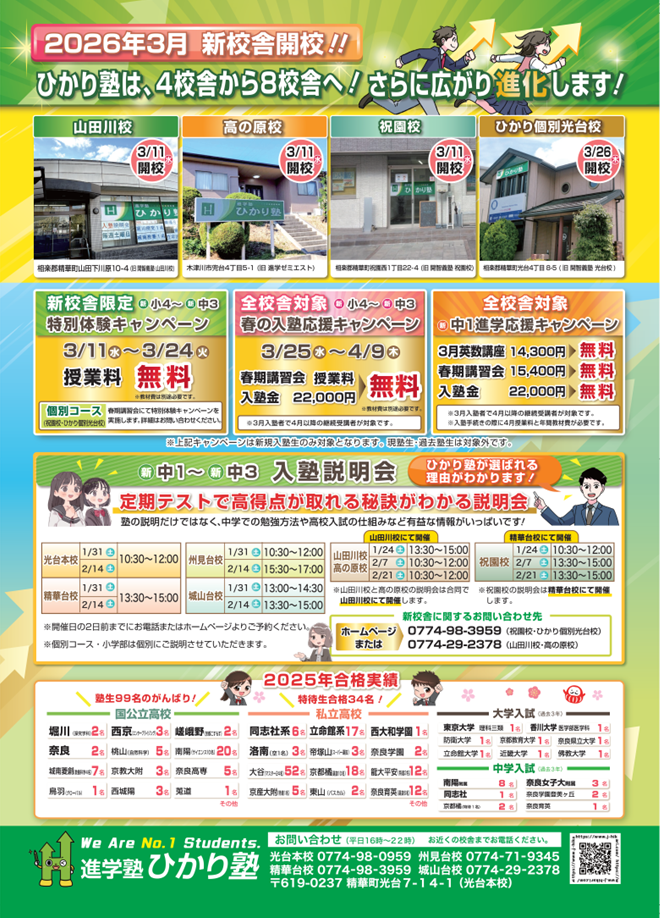 ひかり塾では2026年3月より新たに4校舎を開校いたします。